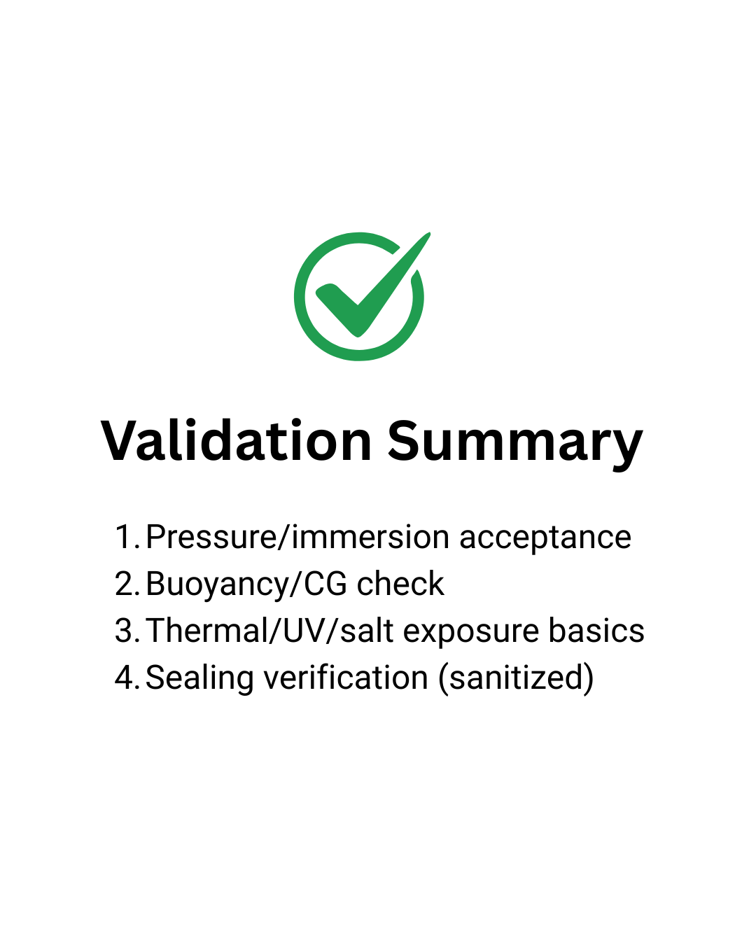 Readiness: Passed internal buoyancy and pressure checks to program targets; improved handling via protected strain-relief